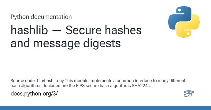 Pour le calcul : bibliothèque Python pour les fonctions de hachage :