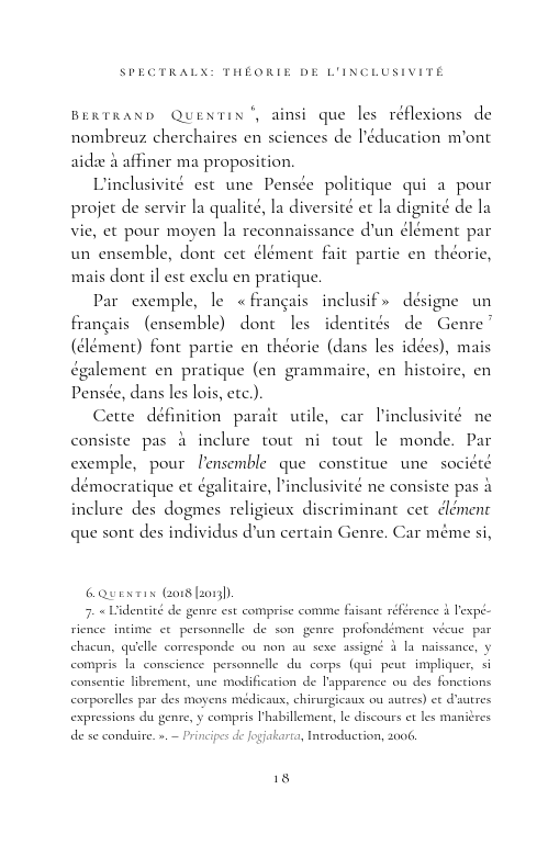 Nous prions nos lectaires de nous excuser pour une erreur qui s’est glissée à la page 18 de la première édition de Spectralx. Théorie de l’inclusivité. La définition correcte du français inclusif est :