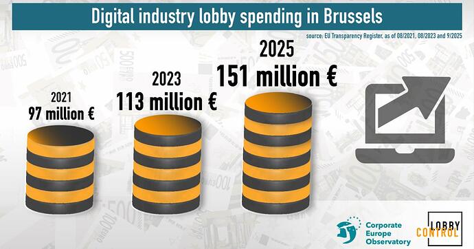In 2025, Big Tech—just ten major companies—spent €49 million lobbying Brussels. That’s more than pharma, finance, and automotive combined.